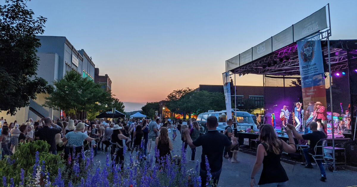 Fayetteville hosts major annual events including Bikes, Blues & BBQ, one of the largest charity motorcycle rallies in the nation, the Fayetteville Roots Festival, First Thursday Art Walk, Lights of the Ozarks on the Square, and Block Street Block Party. The university calendar adds Razorback game days, homecoming, and cultural programming year-round.